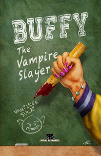 I wanted to display here the posters that I have done so far. We try to divide up the creative duties fairly among our group and because of that, I don't always get the posters I want most, but I have gotten some enjoyable ones. I've been enjoying the exercise so much that I'm tempted to create posters for some of the ones I didn't get assigned or for movies I just really like to sell at conventions.