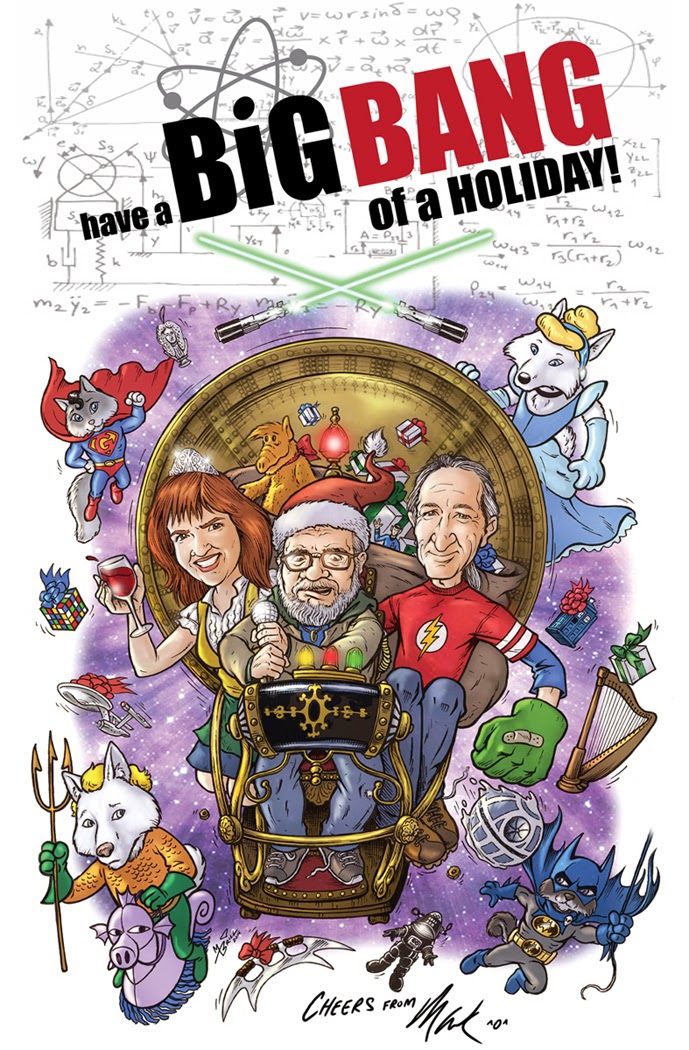 For the past 10 years I have made themed cartoon Christmas cards for my household. It consists of caricaturish drawings of myself, Belinda, our housemate Edmund and the family pets. (The fur-babies change occasionally because we lost Barnum, Phantom and Luna. Gandalf, our male Huskie and Lily, our female Huskie, Merlyn, our Siamese/Ragdoll mix and Gallifrey, our Balinese are the current fluffy kids.)